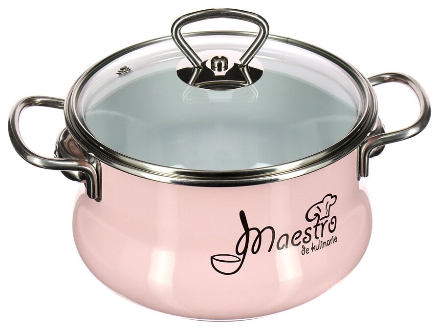 Лучшие цены. Кастрюля 4,0л тор Maestro розовая Vitross (8SO205S розовый) эмалированная сталь изготовлена с применением высококачественного двухслойного жаропрочного эмалевого покрытия, нержавеющий ободок, крышка с ненагревающейся ручкой. Может быть использована на всех типах кухонных плит: электрических, газовых, керамических, индукционных. Подходит для мытья в посудомоечной машине. Имеет хорошие характеристики износостойкости. Магазины в вашем городе.