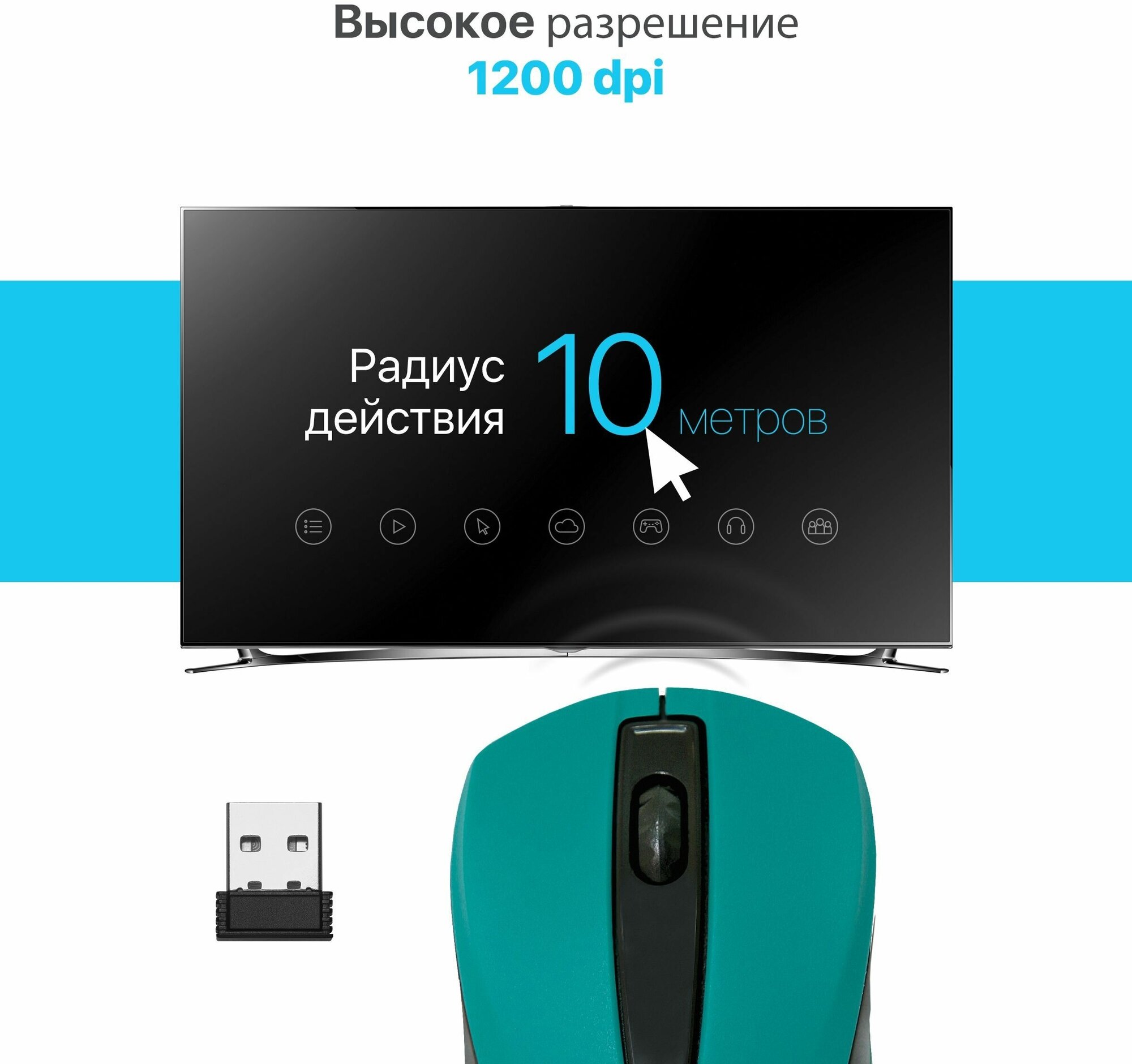 Мышь DEFENDER MM-605 зеленая, беспроводная, 3 кнопки, 1200dpi, USB. Питание 2 × AAA. Радиус действия 10 м.