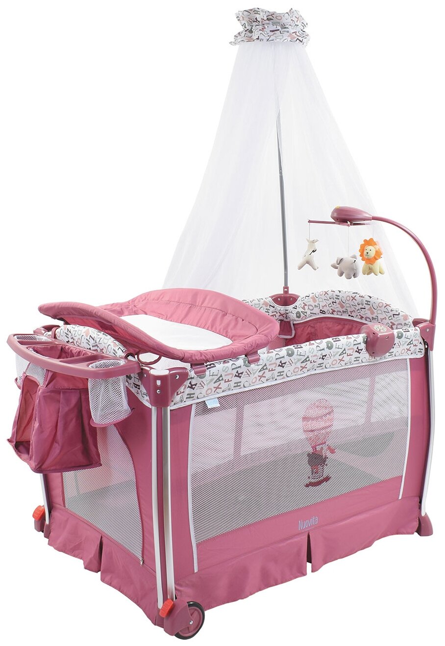 Лучшие цены. Детская кровать-манеж Nuovita Fortezza NVM-AP930 – оснащена боковым лазом, съемным пеленальным столиком с навесом добавляет манежу уникальности. Украшает манеж роскошным электронным музыкальным мобилем, 3-мя игрушками, ночником. В данном манеже присутствует функция виброукачивания. Кровать имеет 2 уровня ложа, колесики со стопорами. Размер спального места: 71х100 см. Магазины в вашем городе.