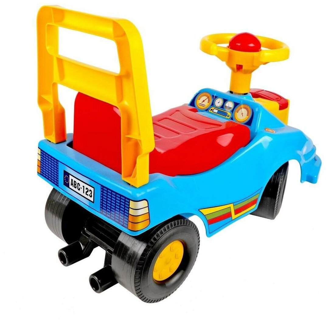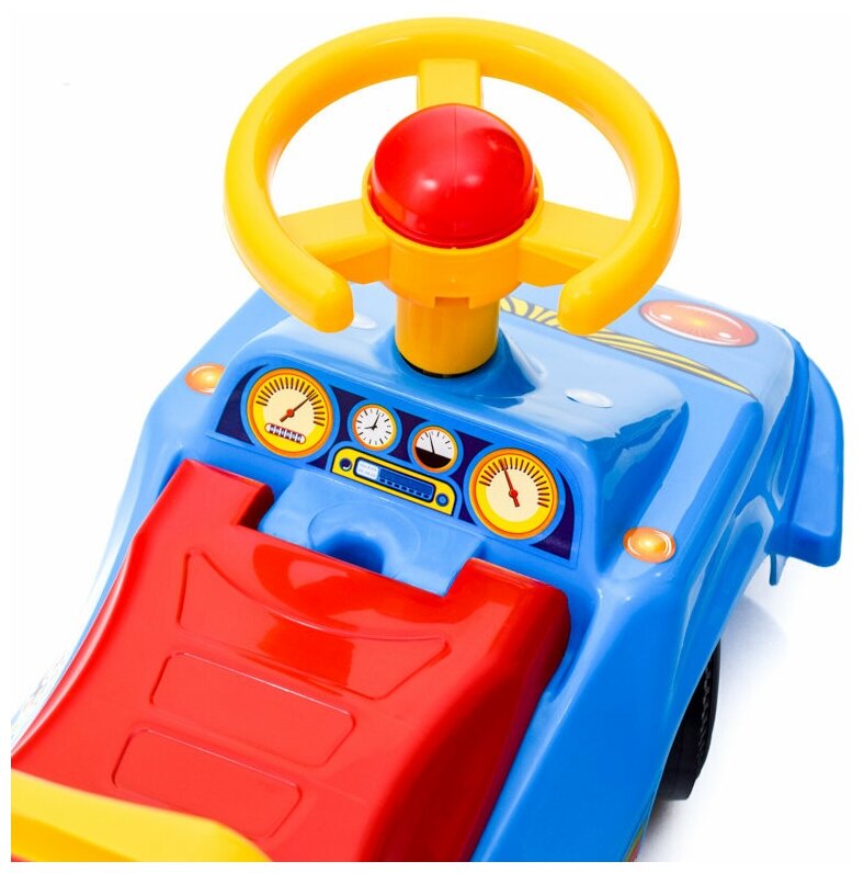 Лучшие цены. Незаменимая игрушка для ловких автомобилистов. Яркие цвета и интересные наклейки непременно привлекут внимание родителей и понравятся малышам. Автомобиль надежный, прочный, практичный и удобный. Для быстрой связи с друзьями - на корпусе размещен мобильный телефон. Эргономичный дизайн рассчитан для малышей уже с 1-го года. Спинка предоставляет дополнительную поддержку детям во время езды. На машинке поворотный руль для маневрирования, а сигнальная кнопка для оповещения пешеходов и других автомобилистов. Магазины в вашем городе.