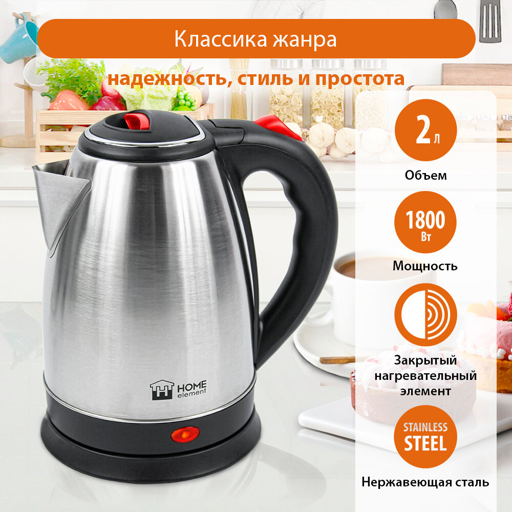 HOME ELEMENT Чайник электрический HOME ELEMENT HE-KT180 1500 Вт серебристый чёрный 2 л нержавеющая сталь