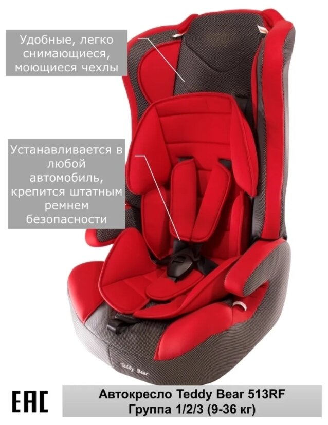 Автокресло группа 1/2/3 9-36 кг Teddy Bear 513 RF DEEP RED+BLACK DOT