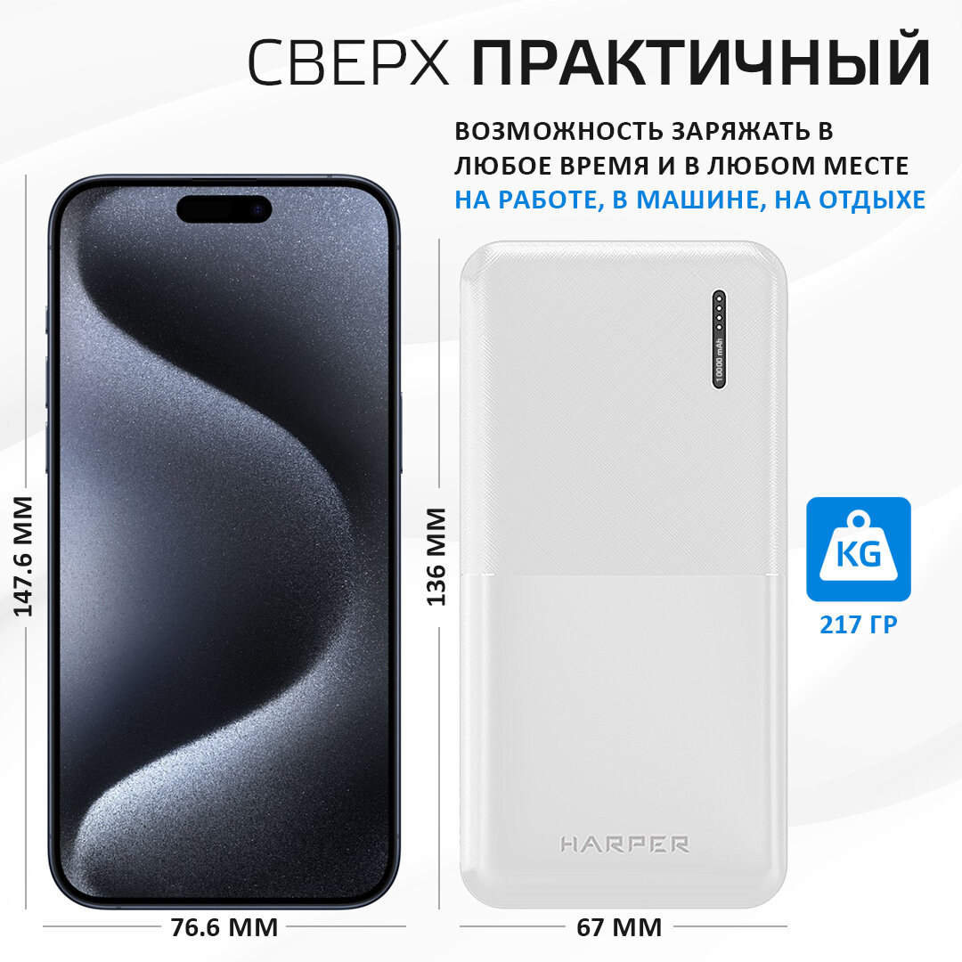 Портативный аккумулятор HARPER PB-10011, белый 1 030 ₽ Подробнее