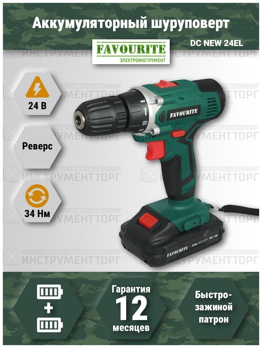 Лучшие цены. Аккумуляторная дрель-шуруповёрт FAVOURITE DC NEW 24EL предназначена для работы с крепежом и сверления отверстий. Для темного времени суток предусмотрена специальная подсветка. 18 ступеней крутящего момента позволяют подбирать наиболее подходящий режим работы для конкретных задач. Функция реверса упрощает выведение застрявшего в материале сверла. Преимущества FAVOURITE DC NEW 24EL Аккумуляторная технология избавляет оператора от необходимости следить за шнуром питания Быстрозажимной патрон для простой смены. Магазины в вашем городе.