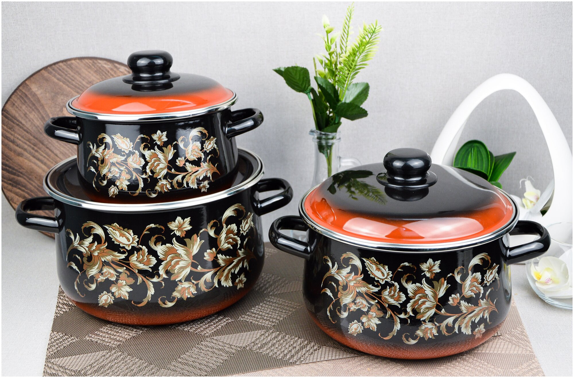 Набор посуды №408 жостово (к.2; 4; 5,5л) эмаль