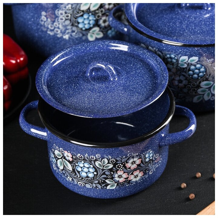Набор кастрюль "Голубика", 3 предмета: 1.5 л, 2.9 л, 4.5 л, эмалированные крышки, индукция, цвет синий 3 841 ₽ Подробнее