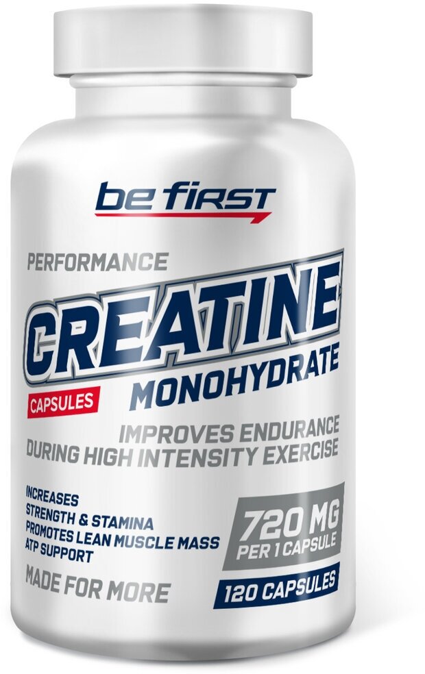 Лучшие цены. Creatine Monohydrate Capsules от Be First – излюбленная и эффективная спортивная добавка, которая дает возможность атлетам достигать более высоких результатов, повыщать интенсивность и объем тренинга посредством увеличения в мышцах запаса креатина, являющегося энергетическим субстратом. Be First Creatine Monohydrate Capsules выпускается в соответствии с мировыми стандартами качества на предприятии, обладающем международными сертификатами ISO и HACCP. Что такое креатин. Магазины в вашем городе.