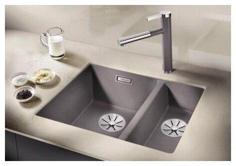Лучшие цены. Кухонная мойка BLANCO SUBLINE 340/160-U выполнена из уникального материала – Silgranit. Он на 80% состоит из гранита и обеспечивает изделию максимальную гигиеничность и долговечность. К тому же данная модель имеет довольно привлекательный и стильный внешний вид, позволяющий гармонично сочетаться с любым интерьером кухонного помещения. Стоит отметить, что полезным ее дополнением служат коландер и разделочная доска, выполненная из термостойкого материала, а еще одним стимулом кухонную мойку BLANCO SUBLINE 340. Магазины в вашем городе.