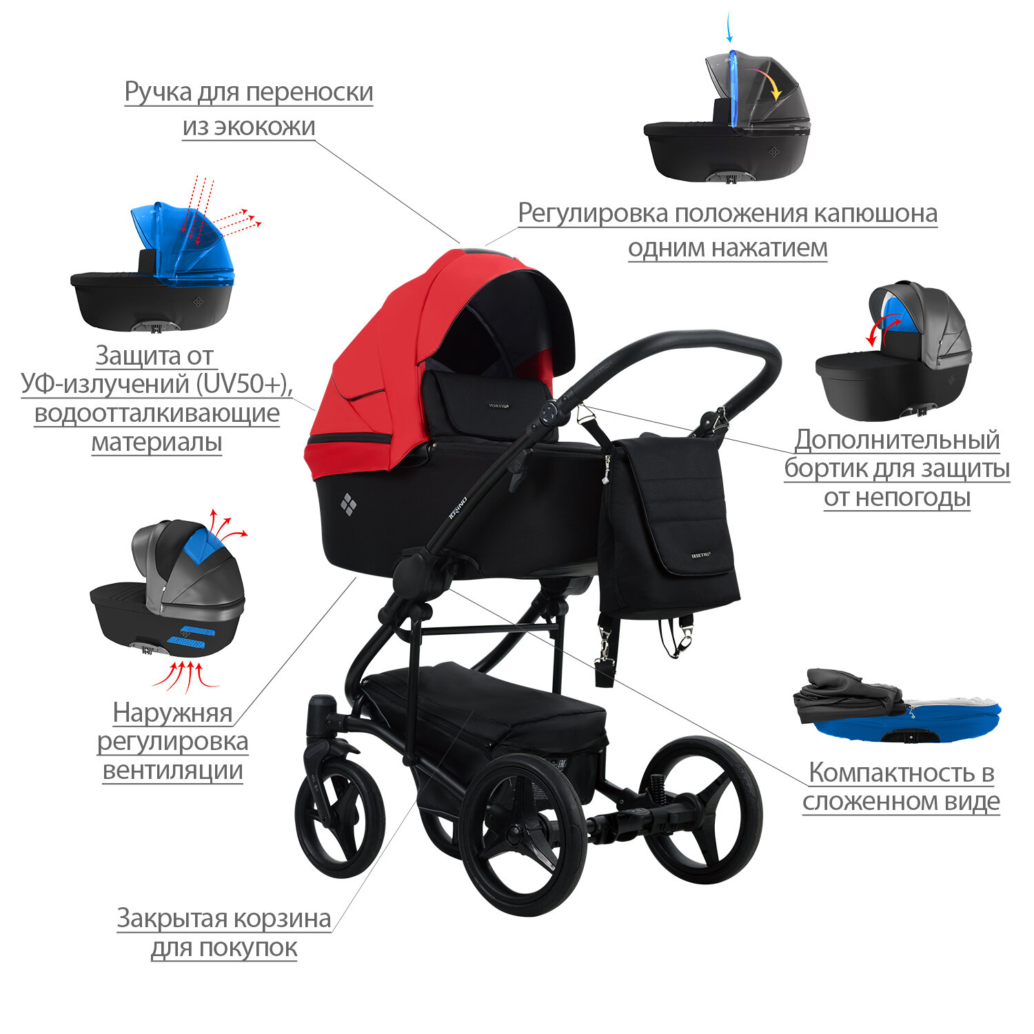| Комплектация | прогулочный блок / люлька-переноска / накидка для ног / дождевик / сумка / рюкзак для вещей / отделение для покупок |