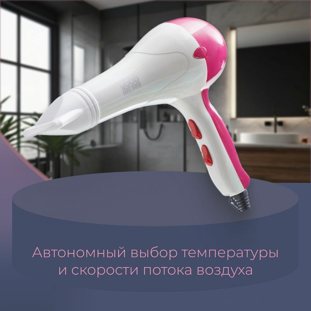 Фен GOODHELPER HD-1601, 1600 Вт, 2 скорости, 2 температурных режима, бело-розовый