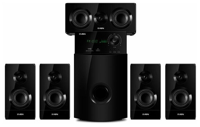 Домашний кинотеатр / Акустическая система 5.1 / Колонки для компьютера SVEN HT-210 / 125 Вт / Bluetooth / пульт / дисплей / FM / USB / SD / Optical / Coaxial