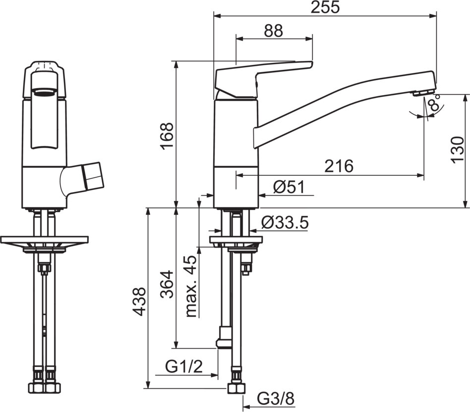 | Высота излива (конструкции) | 168 мм |