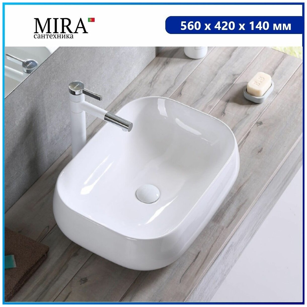 Лучшие цены. Раковина-чаша Mira 56 MR-5642 прямоугольная с закругленными краями. Подходит для ванных комнат различной планировки в современном стиле и отличается стильной и изящной формой.Материал: санфаянс. Материал высокого качества проходит ряд термических обработок, что позволяет раковине долгое время оставаться крепкой и сохранять белизну и блеск покрытия.Размеры (ШхВхД): 56х14х42 см.Установка: накладная.Цвет: белый.В комплекте поставки: раковина. Магазины в вашем городе.