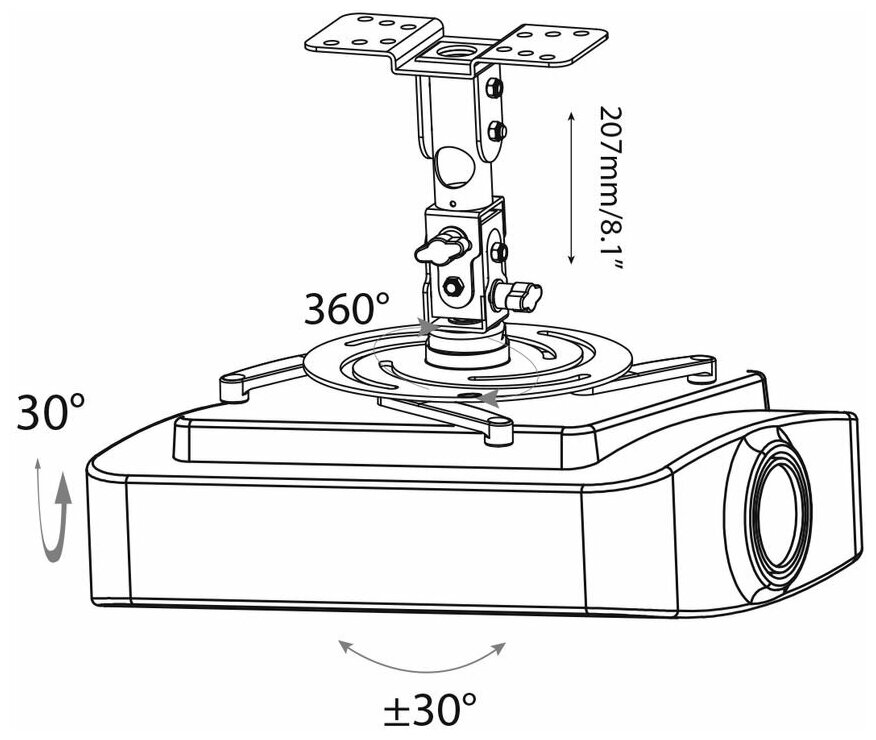 Кронштейн для проектора Cactus CS-VM-PR04-AL, потолочный, поворот и наклон, серебристый