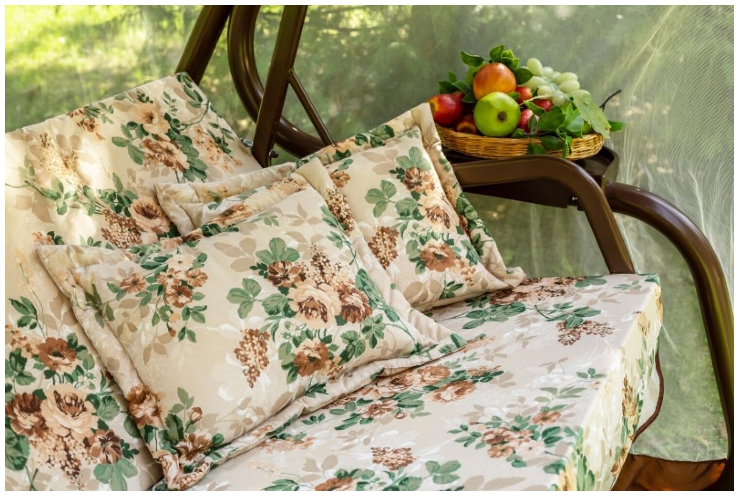 Качели садовые Турин с825, каркас коричневый, ткань цветы