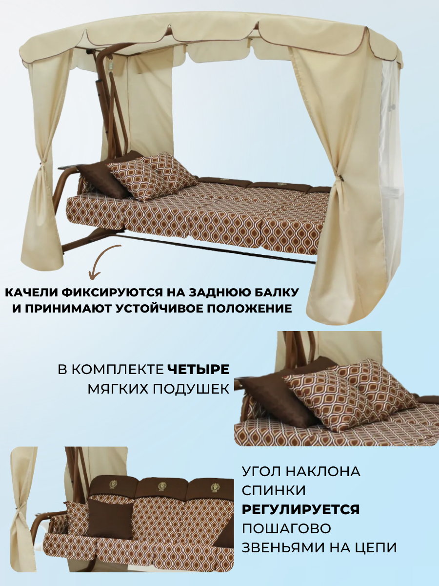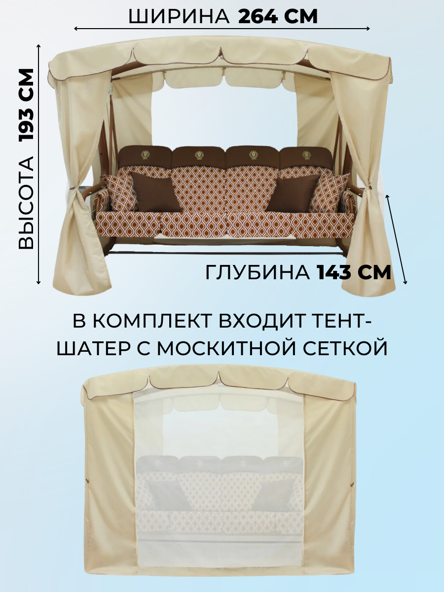Качели садовые Арно 4-местные с москитной сеткой Монарх бежевые/шоколад