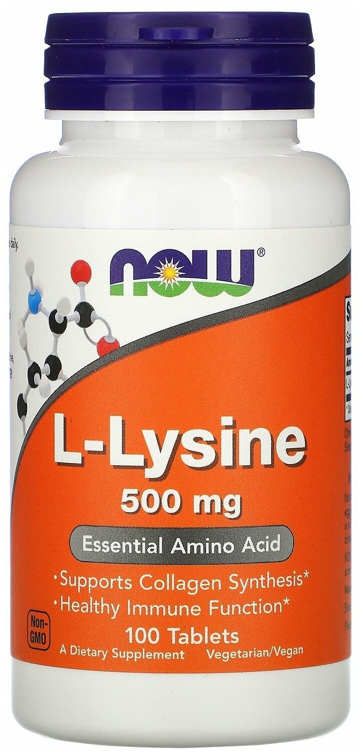 Лучшие цены. Описание L-Lysine 500 mg от NOW L-Lysine / Лизин - пищевая добавка помогающая при генитальном герпесе и герпесе губ. Незаменимая аминокислота. Является основой для образования белка. Л-Лизин - один из лучших вариантов, доступных для обработки инфекций вируса герпеса. Попадая в организм, Лизин заменяет другую аминокислоту - Аргинин. По химической структуре они как два брата близнеца. Вирус герпеса "ошибается" и строит новые вирусы не из Аргинина, а из Лизина. Магазины в вашем городе.