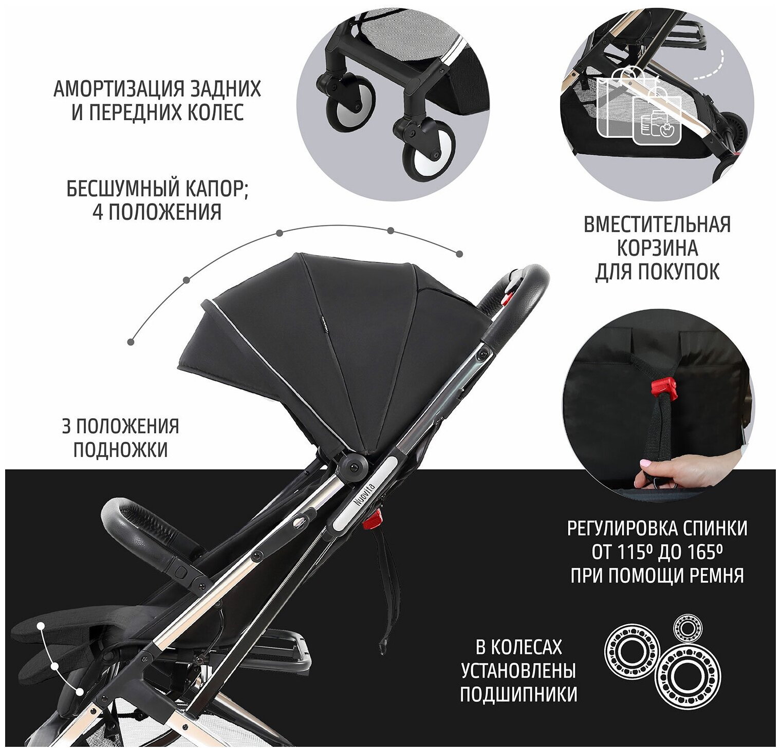 Коляска прогулочная детская Nuovita Anima легкая для путешествий, складная, трансформируется в сумку-тележку (черный на серебряной раме)