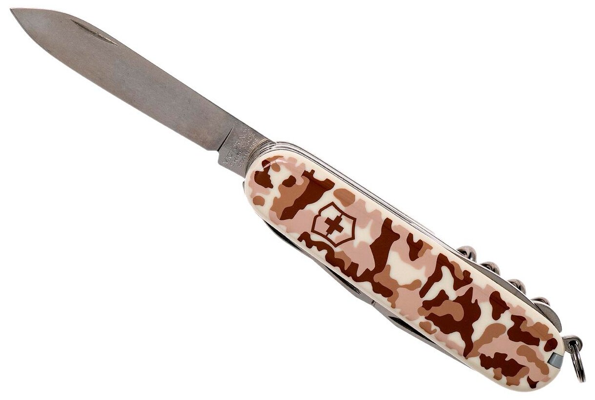 Лучшие цены. Швейцарский армейский нож HUNTSMAN имеет 15 функций: 1. Большое лезвие 2. Малое лезвие 3. Штопор 4. Консервный нож с: 5. – Малой отвёрткой 6. Открывалка для бутылок с: 7. – Отвёрткой 8. – Инструментом для снятия изоляции 9. Шило, кернер 10. Кольцо для ключей 11. Пинцет 12. Зубочистка 13. Ножницы 14. Многофункциональный крючок 15. Пила по дереву Цвет рукояти: бежевый камуфляж Рекомендуемые чехлы: 4.0480.1, 4.0480.3, 4.0520.1, 4.0520.3, 4.0520.31, 4.0520.32, 4.0543.3, 4.0533, 4.0738 Рекомендуемые аксессуары. Магазины в вашем городе.