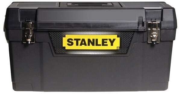 Лучшие цены. Ящик для инструмента "Stanley" пластмассовый с металлическими замками. Металлические замки с закрытыми резиновыми накладками концами защелок. Ручка с покрытием из термопластичной резины для комфорта. Интегрированные органайзеры для мелких деталей и лоток. Логотип, нанесенный с помощью технологии IML (вплавленный в материал корпуса) длительное время сохраняется на ящике. Магазины в вашем городе.