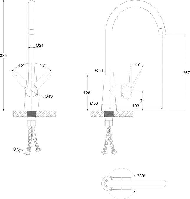 | Угол поворота излива | 360 ° |