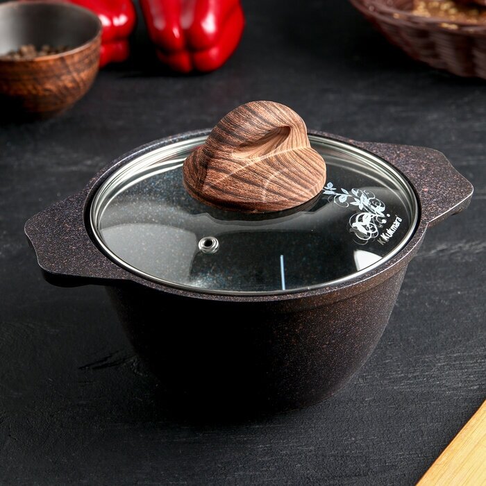 Кастрюля KUKMARA Granit ultra, 2 л, стеклянная крышка, антипригарное покрытие, коричневый мрамор