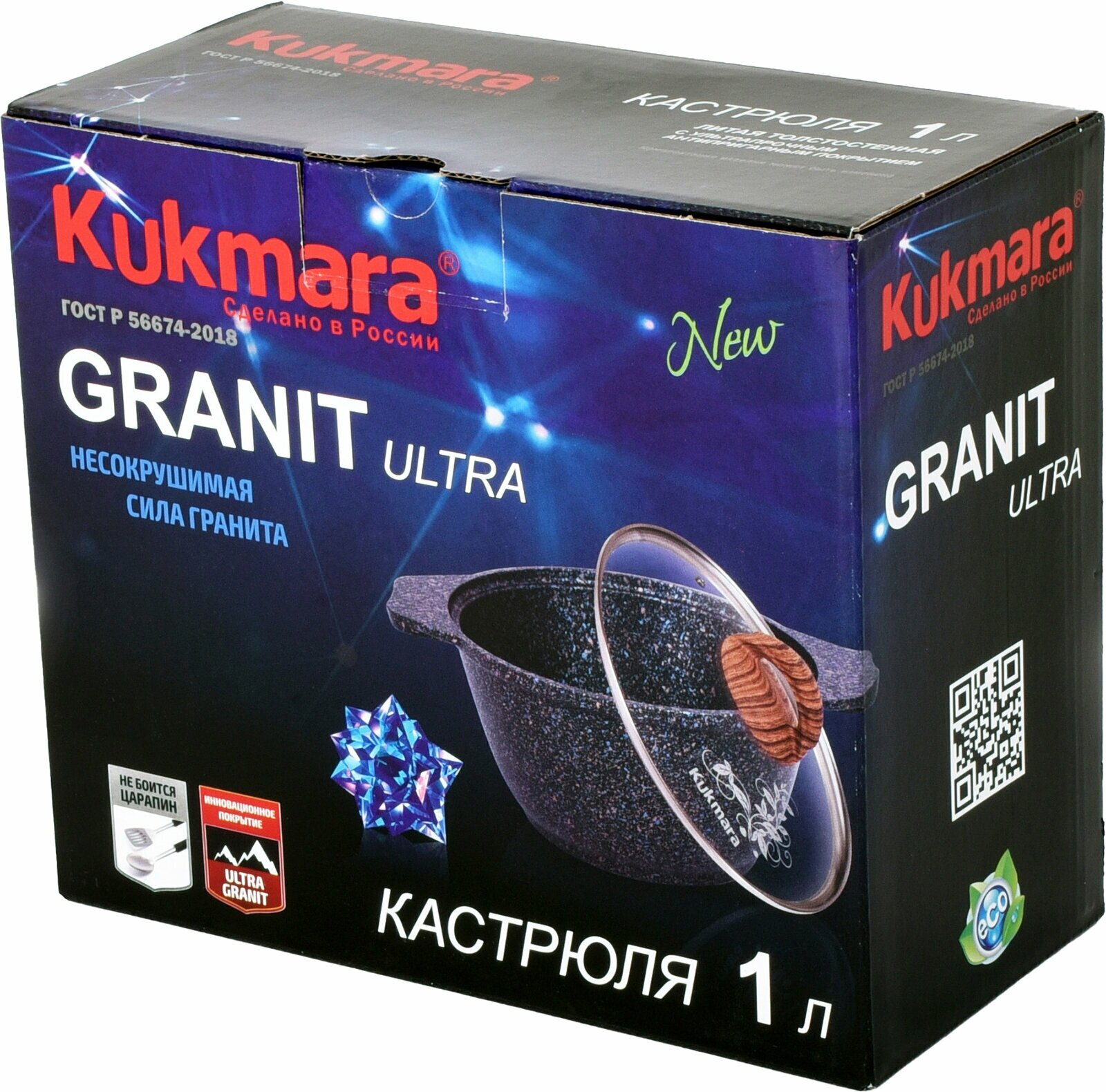 KUKMARA Кастрюля Granit ultra, 4 л, стеклянная крышка, антипригарное покрытие