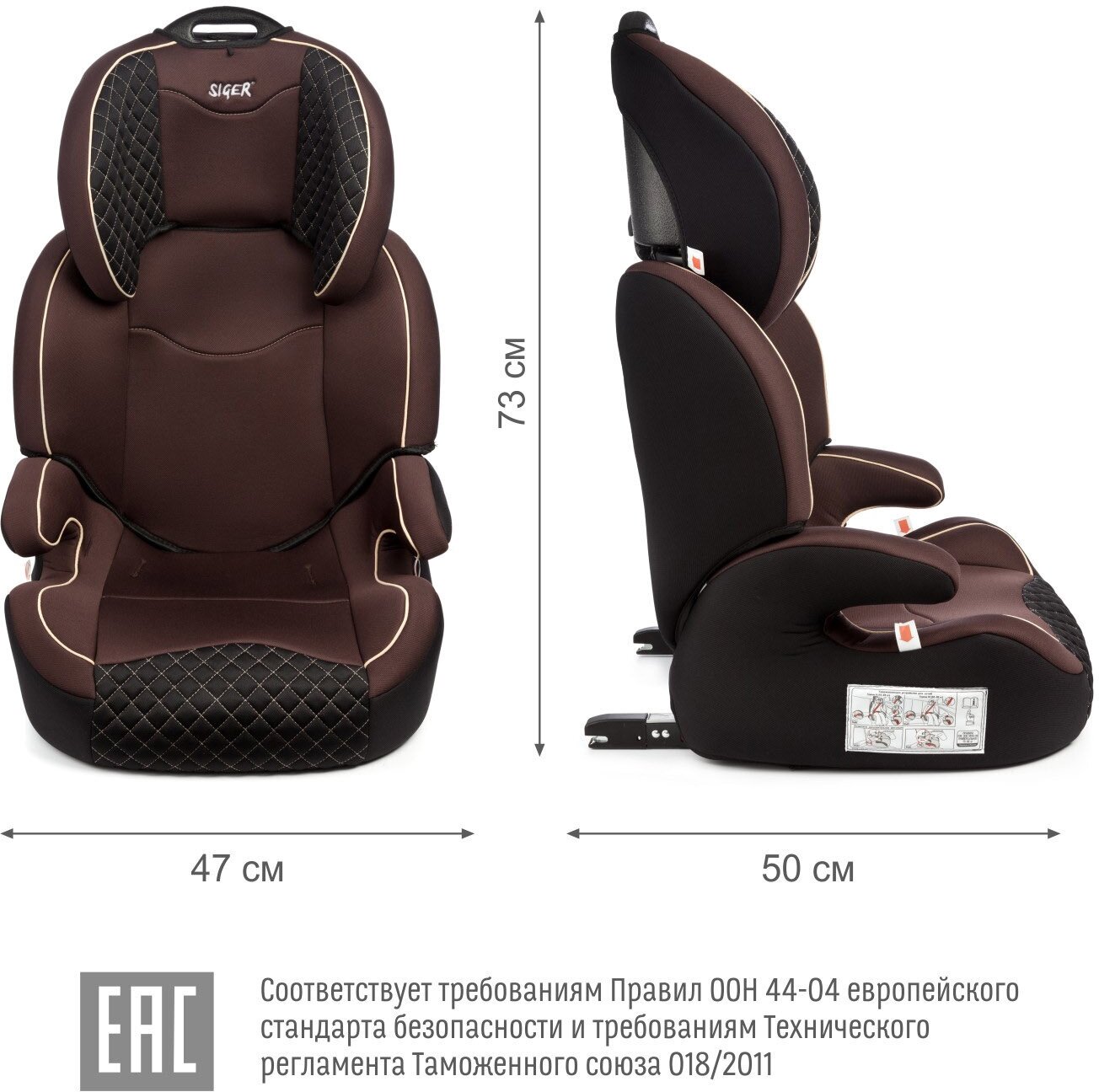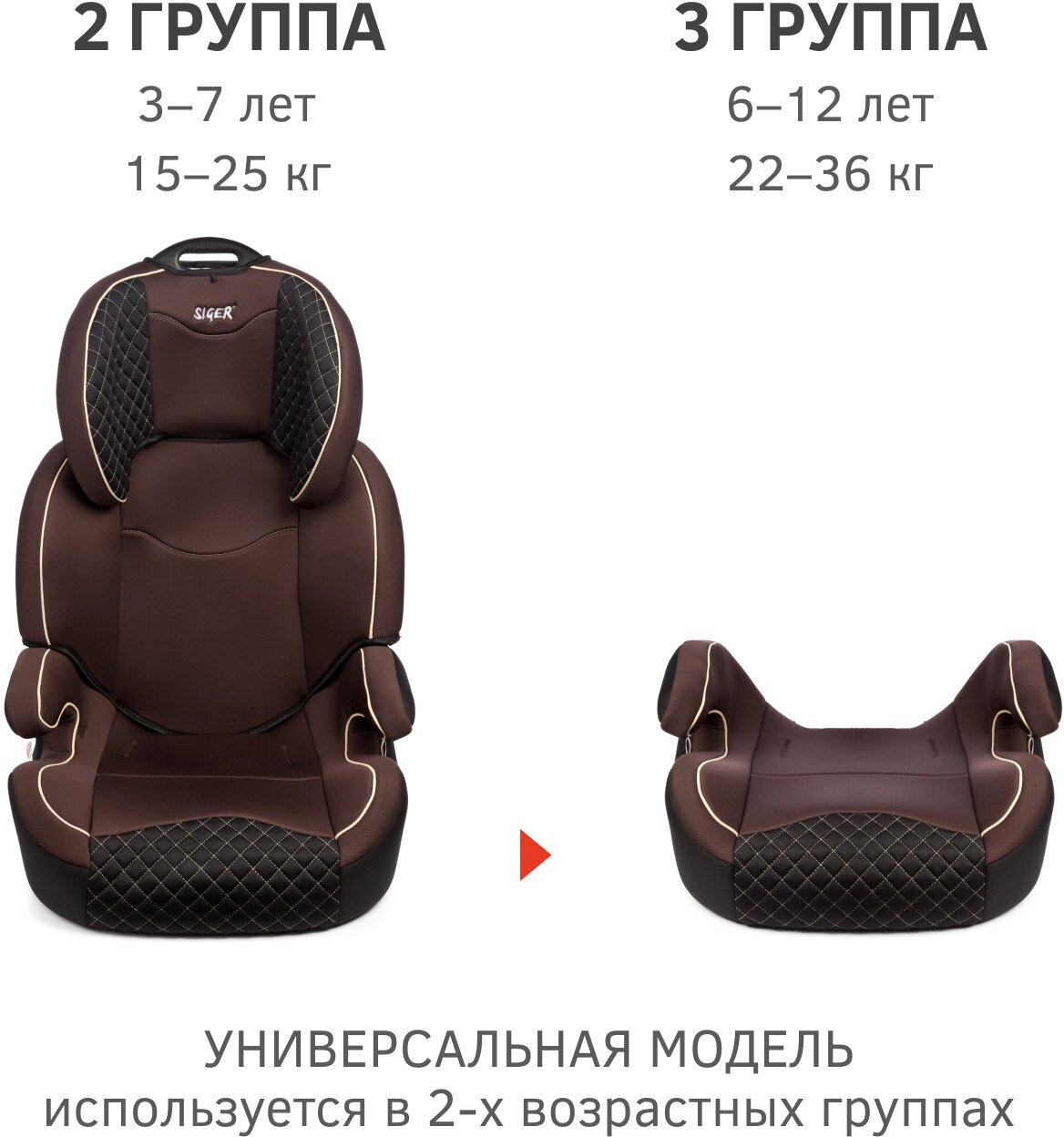 Детское автокресло Удерживающее устройство для детей SIGER "Вега FIX" коричневый, гр. II/III, 15-36 кг, 3-12 лет