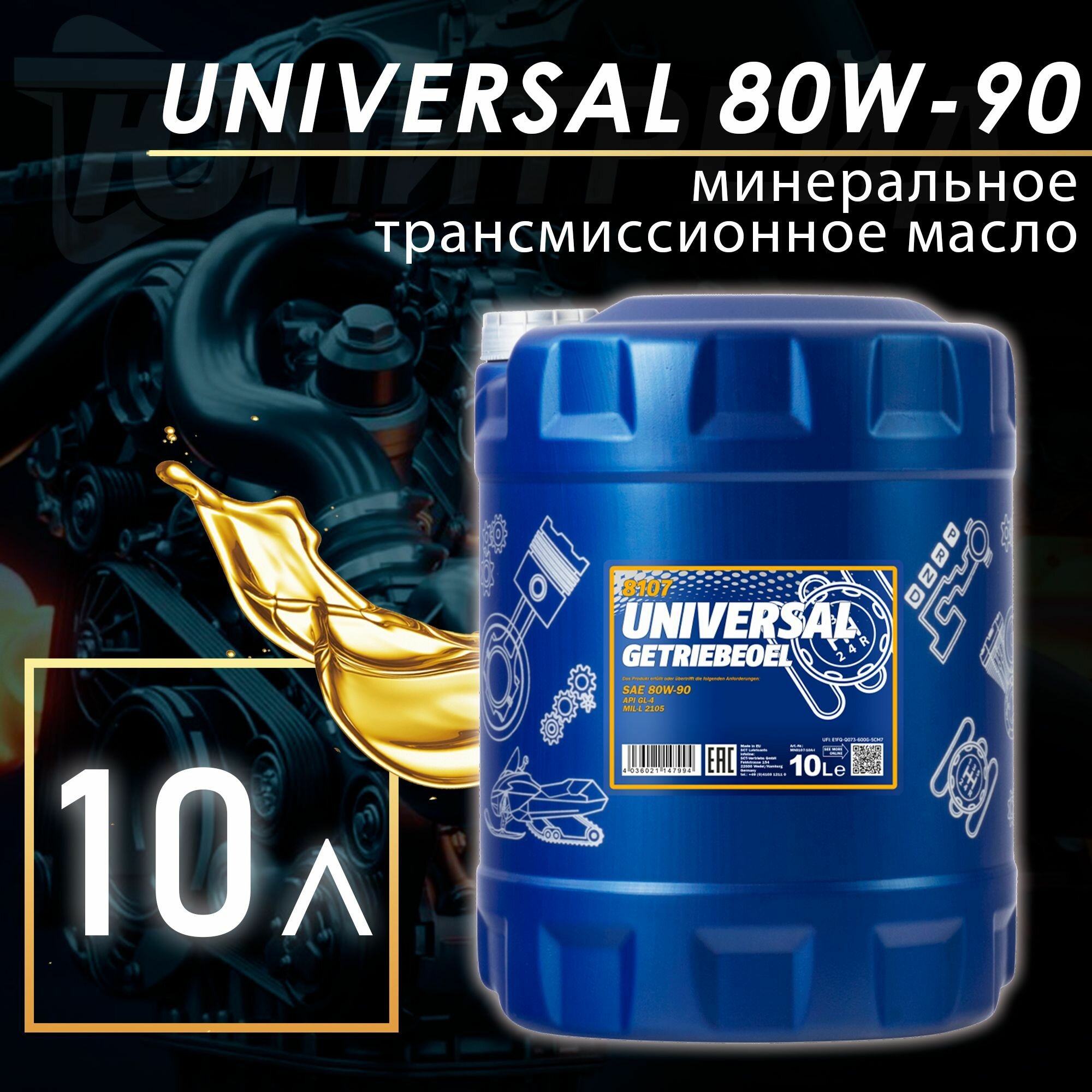 8107 MANNOL UNIVERSAL GETRIEBEOEL 80W90 10 л. Трансмиссионное масло 80W-90