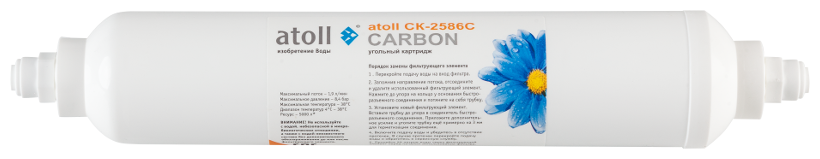 Лучшие цены. Картриджи стандарта Inline с быстросъемными соединениями 1/4". Угольный постфильтр Inline atoll CK-2586C - из порошкового активированного угля - последняя ступень в системах обратного осмоса Номинальный поток: 1,9 л/мин Ресурс 5000 (л). Магазины в вашем городе.