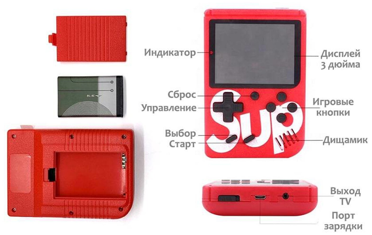 Флешкин / Игровая приставка SUP SUP GAME BOX 400 игр в 1, 8 bit красный