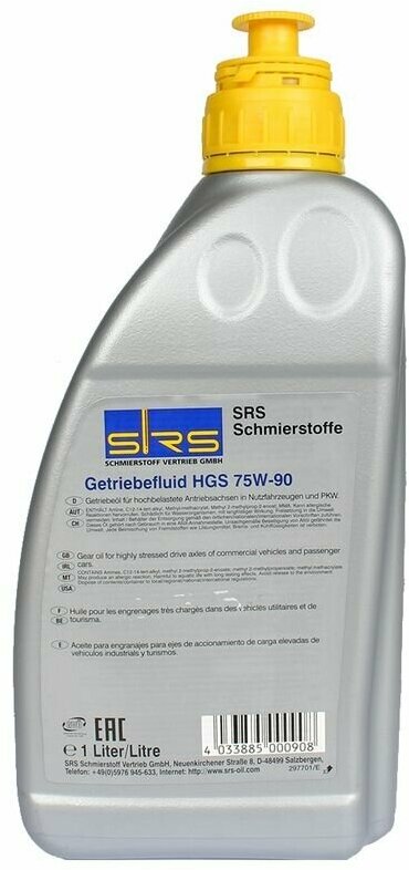 SRS 4033885000908 SRS Масо трансм. Getriebefluid HGS 75W-90 (GL-5) (1 .) 7 780 ₽ Подробнее