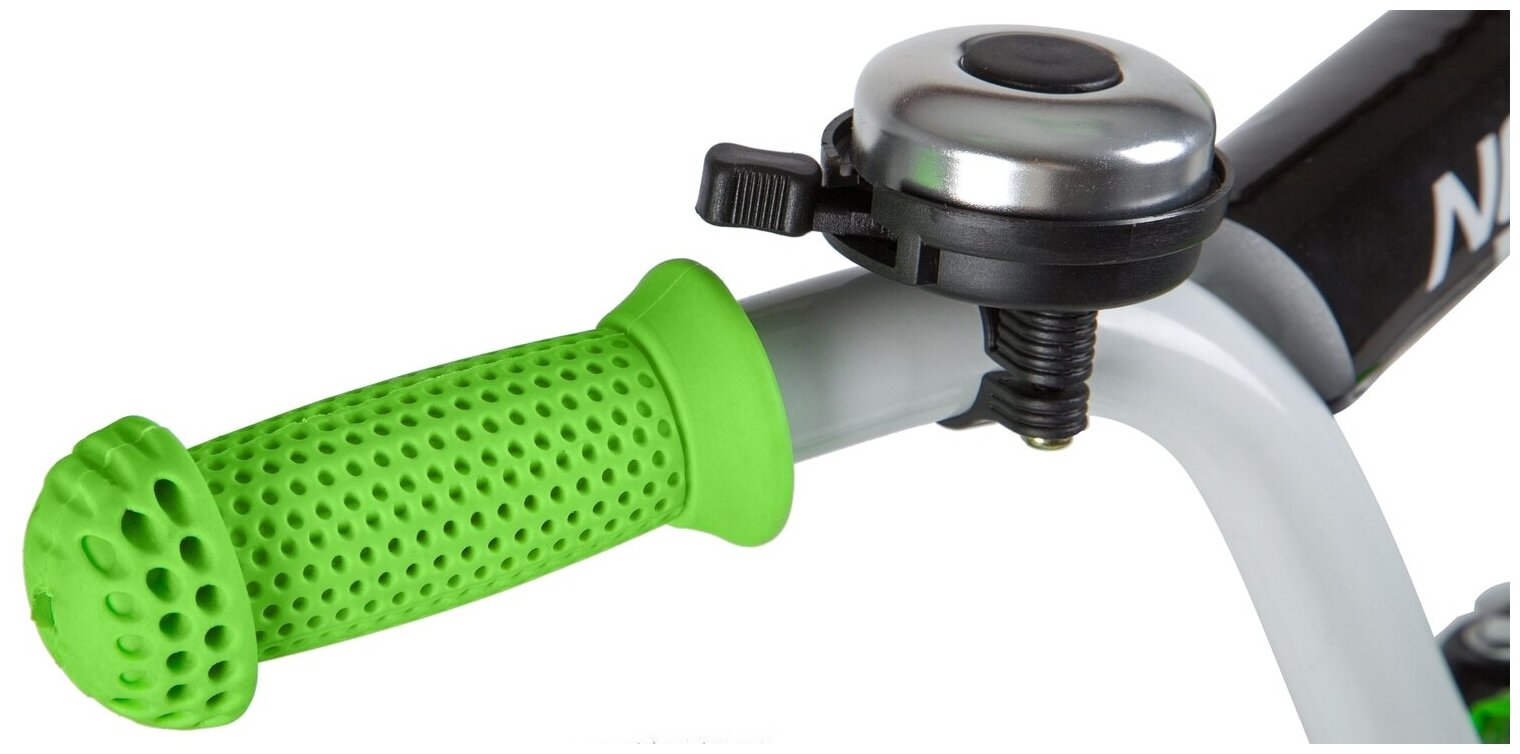 Велосипед NOVATRACK 14" STRIKE белый-зелёный, тормоз нож, крылья корот, полная защ.цепи