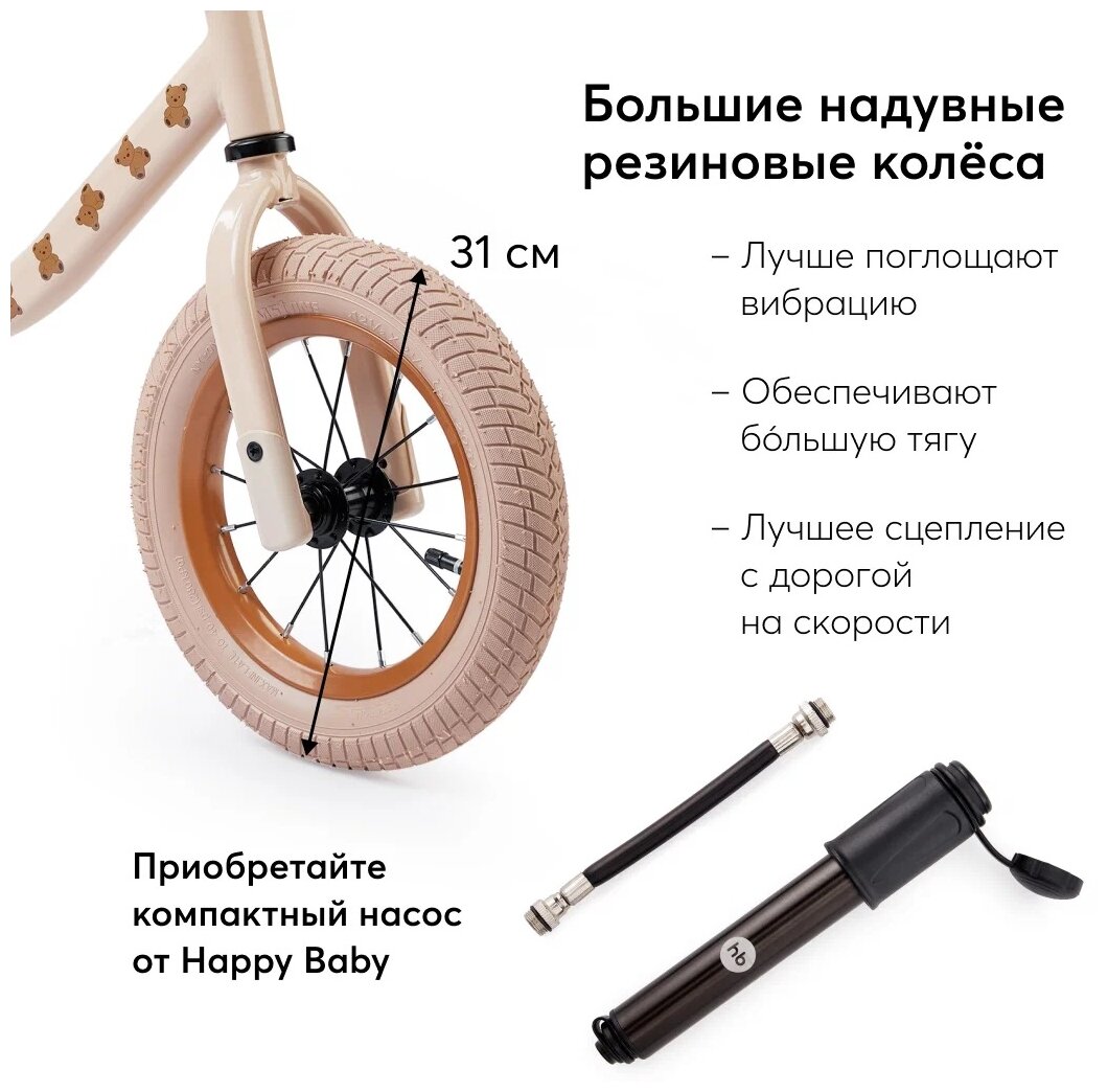 Детский велосипед Беговел детский Happy Baby FRANKY, от 2 лет, рост 90-120, с наклейками, бежевый