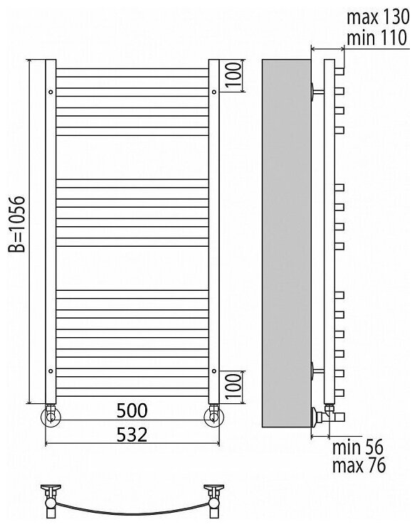 Полотенцесушитель Водяной полотенцесушитель TERMINUS Авиэль П14 532x1056 хром