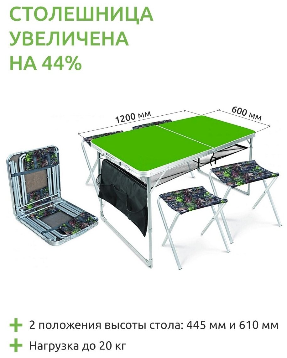 Лучшие цены. Раскладной алюминиевый стол с пластиковой столешницей и стульями — необходимый аксессуар для пикника или похода. Комплект мебели можно взять с собой на рыбалку, охоту, привезти на дачу или поставить в саду загородного дома. Набор складной садовой мебели занимает мало места, мало весит, хранится в маленьком чемоданчике, который быстро трансформируется в полноценный обеденный гарнитур. Магазины в вашем городе.