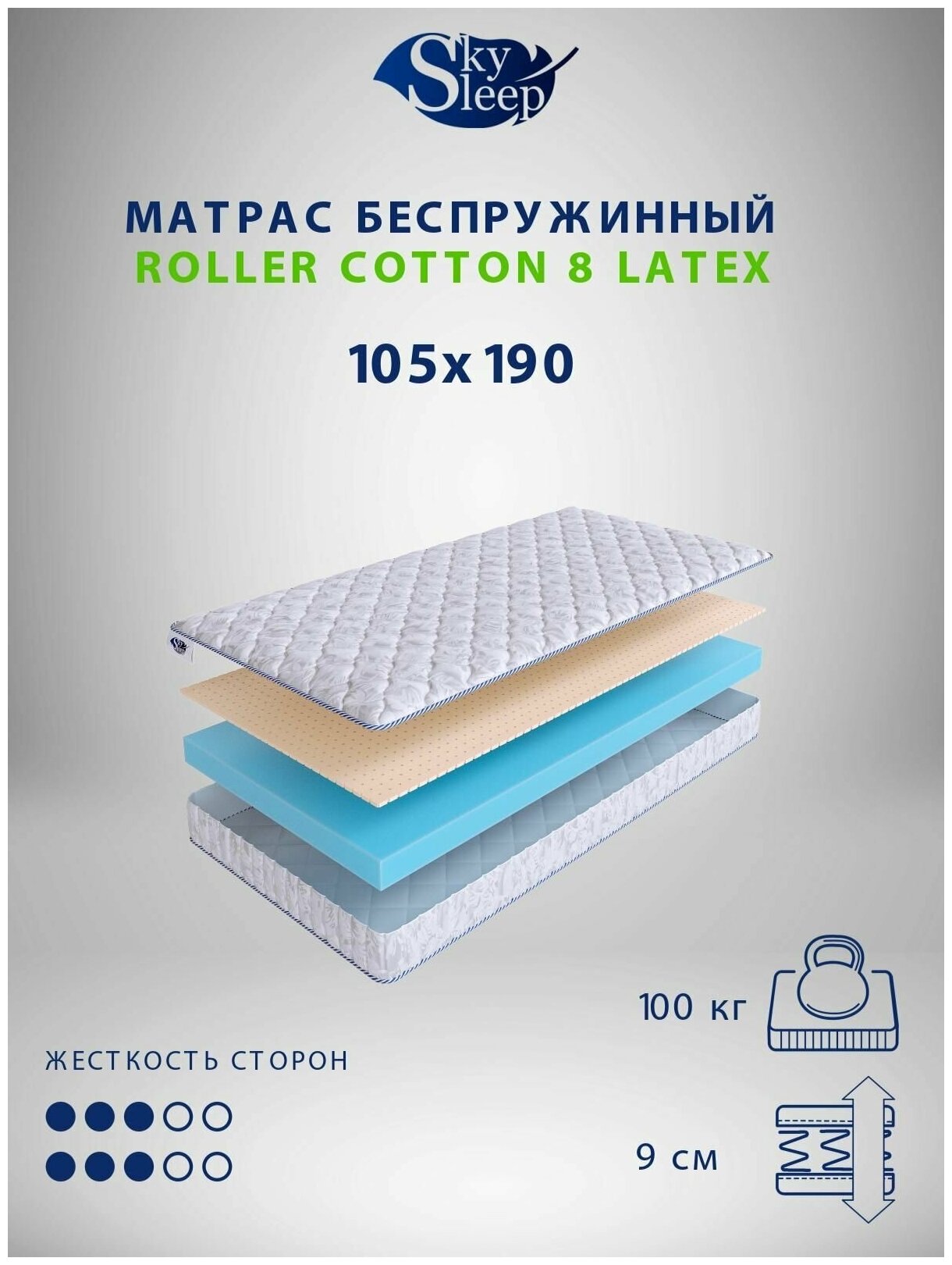Матрас SkySleep Roller Cotton 8 Latex 105х195, нестандартный