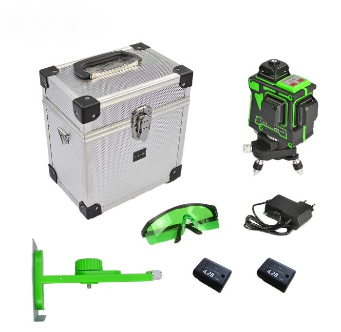 Нивелир / уровень / дальномер Построитель лазерных плоскостей самовыравнивающийся ZITREK LL12-GL-2Li-MC (12 линий, зеленый луч, 2 литиевых аккумулятора, металлический кейс) 065-0188