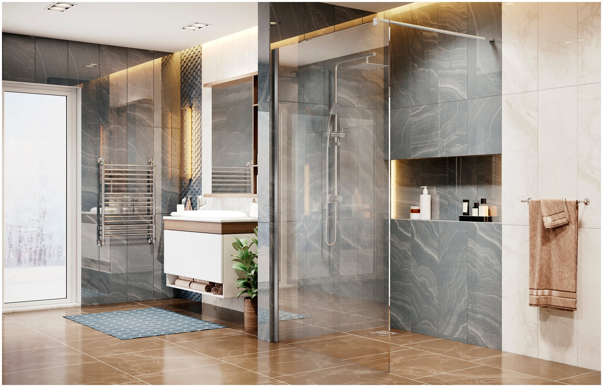 Душевая перегородка 100 см со свободным входом Ambassador Walk-in 15031102: душевая ширма из стекла 8 мм, профиль хром