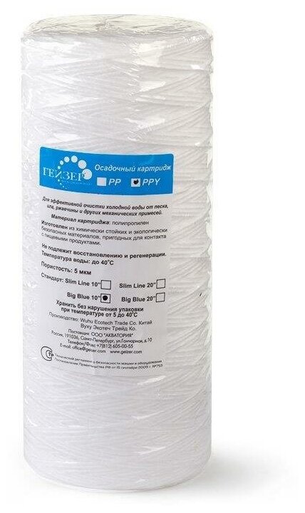 Лучшие цены. Картридж из намоточного шнура полипропилена используется для очистки воды от нерастворимых примесей механического характера. Этот картридж имеет более высокую грязеемкость, чем прочие осадочные картриджи.Необходимо вовремя менять картриджи, чтобы фильтруемая вода оставалась чистой. Магазины в вашем городе.