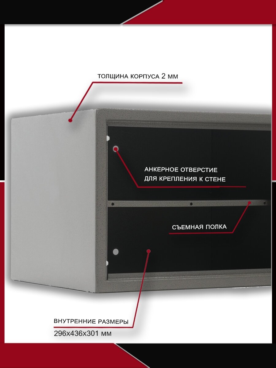 Сейф мебельный для денег и документов VALBERG ASM 30, с ключевым замком, для дома и офиса, ВхШхГ: 300х440х355 мм