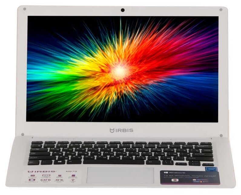 Ноутбук IRBIS NB70 13.3" (1920*1080 )IPS FHD CPU J3455, 4+64GB, Front camera:0.3mp, 4500mha battery, White Win10 Home