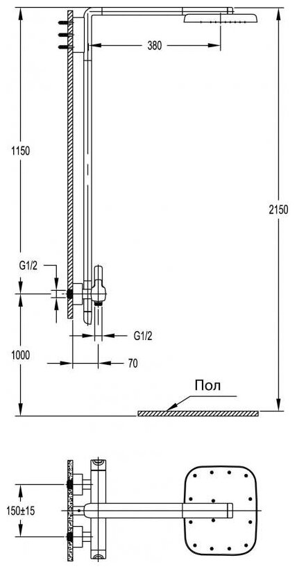 | Комплектация | ручной душ / верхний душ / смеситель / стойка / штанга / душевой шланг / крепление ручного душа |