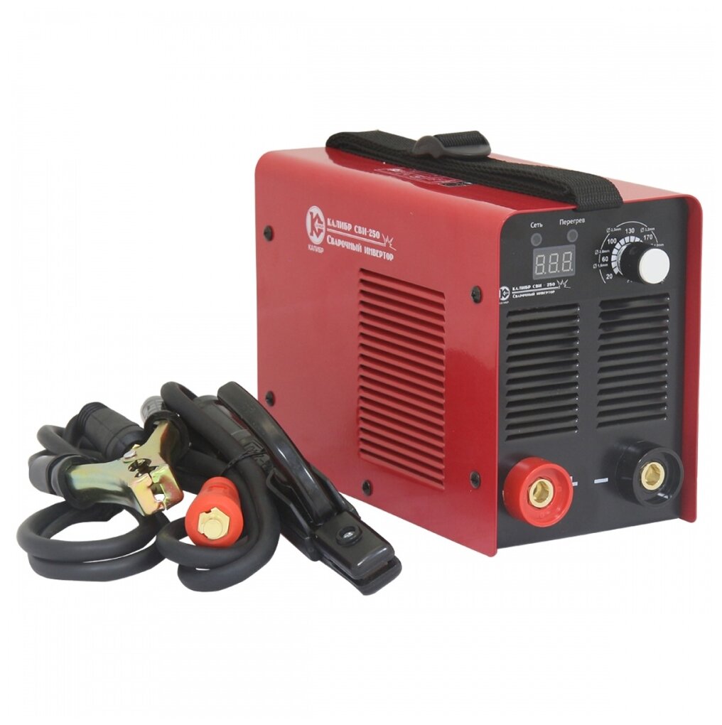 Лучшие цены. Сварочный инвертор Калибр СВИ-250 предназначен для сварки и наплавки постоянным током покрытыми штучными электродами стальных металлоконструкций в бытовых условиях.Инвертор адаптирован к российским условиям работы от сетевого напряжения 230В (+/- 15%) и позволяет осуществлять сварку всеми видами электродов: рутиловыми, базовыми, из нержавеющей стали и др. Инвертор преобразует переменный ток стандартной электросети 230 В (+/- 15%) в постоянный ток сварки от 20 до 250А для работы электродами диаметром. Магазины в вашем городе.