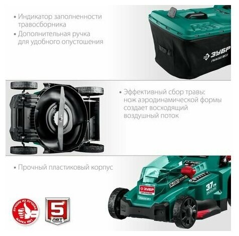ЗУБР 36В бесщеточная газонокосилка, 2х18В АКБ (4Ач). ГКЛ-3736-42