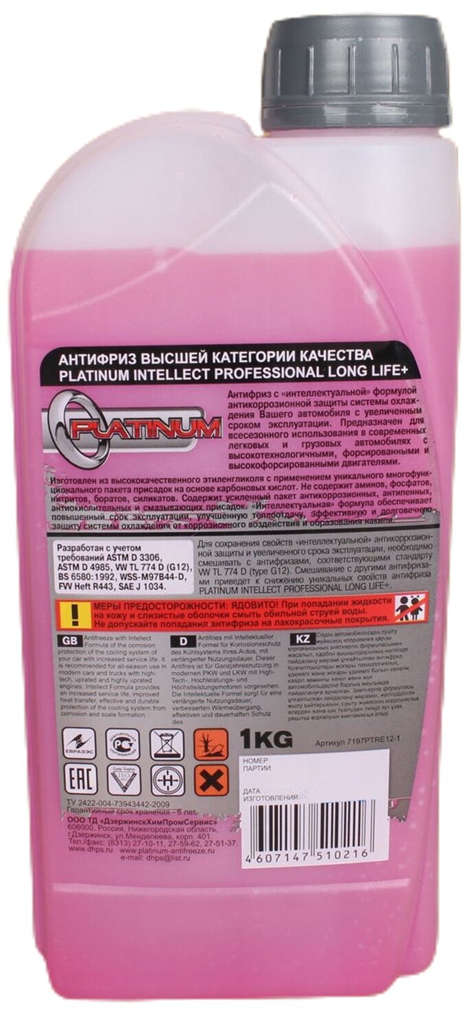 Охлаждающая жидкость Антифриз "Platinum" G12, Красный , 1 Л PLATINUM арт. G12R1