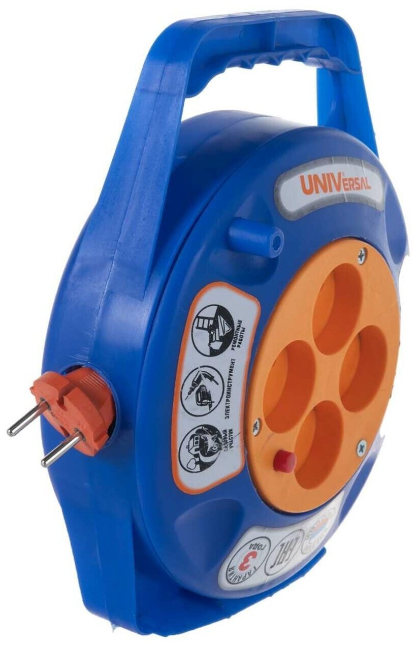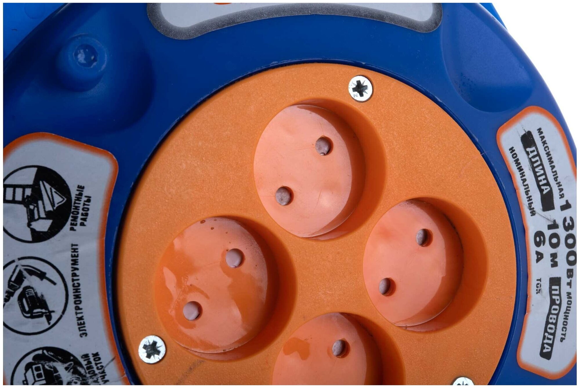 Лучшие цены. Характеристики Количество розеток, шт: 4 Длина кабеля, м: 10 Напряжение сети, В: 220 Тип провода: ПВС Заземление: нет Степень защиты: IP20 Max нагрузка (Вт): 1300 Номинальная сила тока, А: 6 Крепление на стену: да Материал катушки: пластик Область применения: Тяжелые условия Сечение провода, мм²: 2х0.75 Наличие термовыключателя: да Морозостойкий: нет Материал вилки: резина Материал розетки/гнезда: пластик Цвет провода: оранжевый Вес нетто, кг: 1. Магазины в вашем городе.