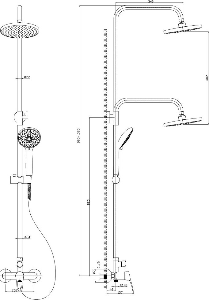 Душевая стойка для душа Rossinka B35-45 с верхним душем и ручной лейкой