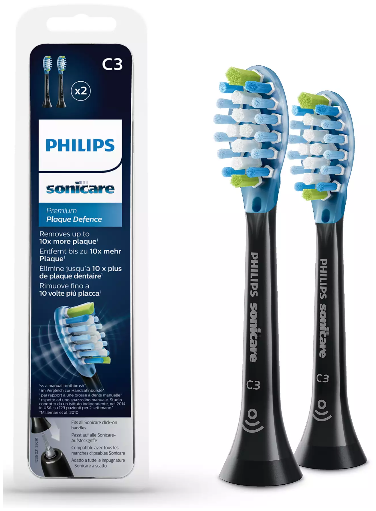 Набор насадок Philips Sonicare C3 Premium Plaque Defence HX9042 для звуковой щетки, черный, 2 шт. (HX9042)