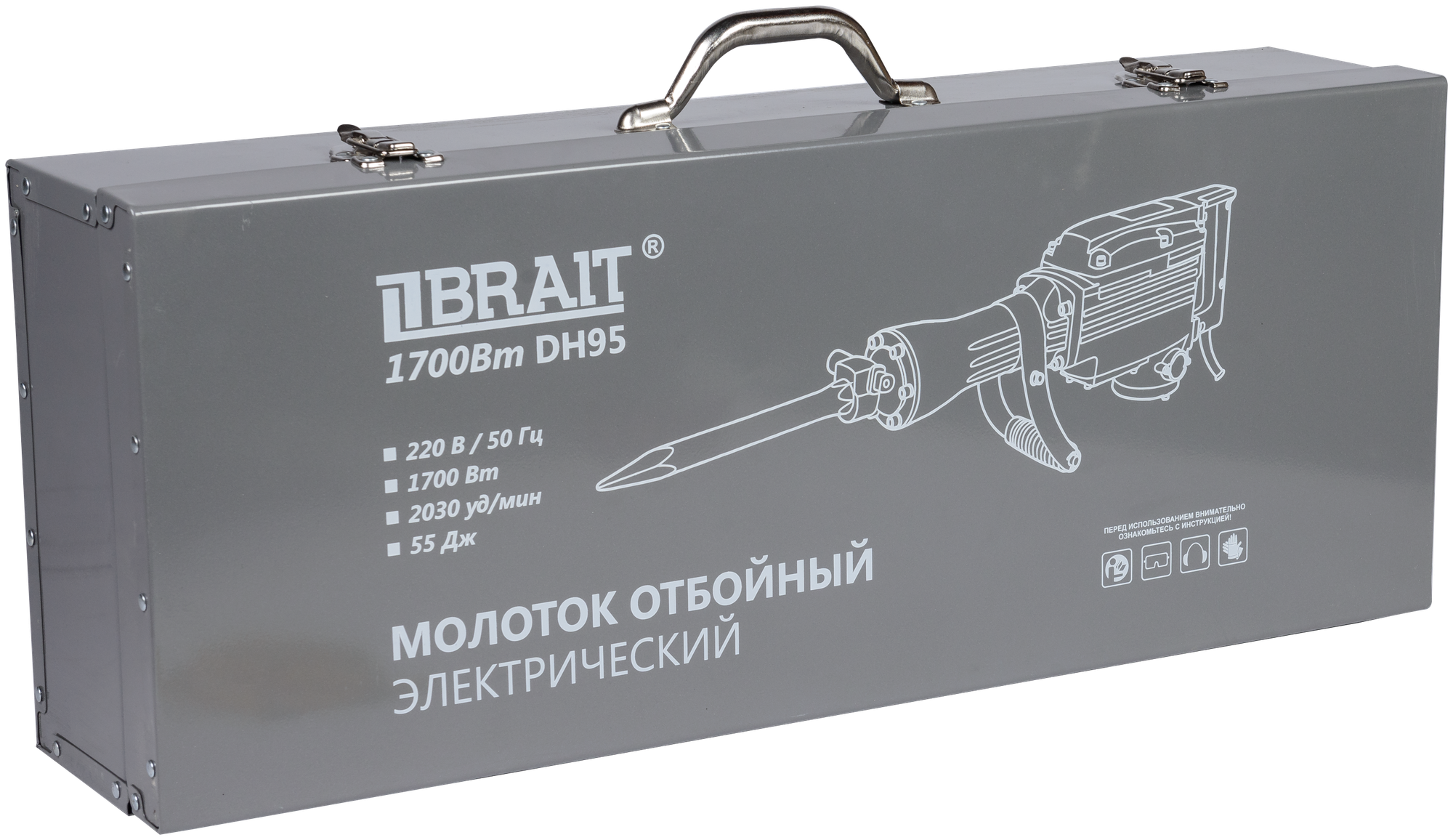Отбойный молоток BRAIT DH95 1700Вт, металический кейс, 2030 уд/мин, 55 дж